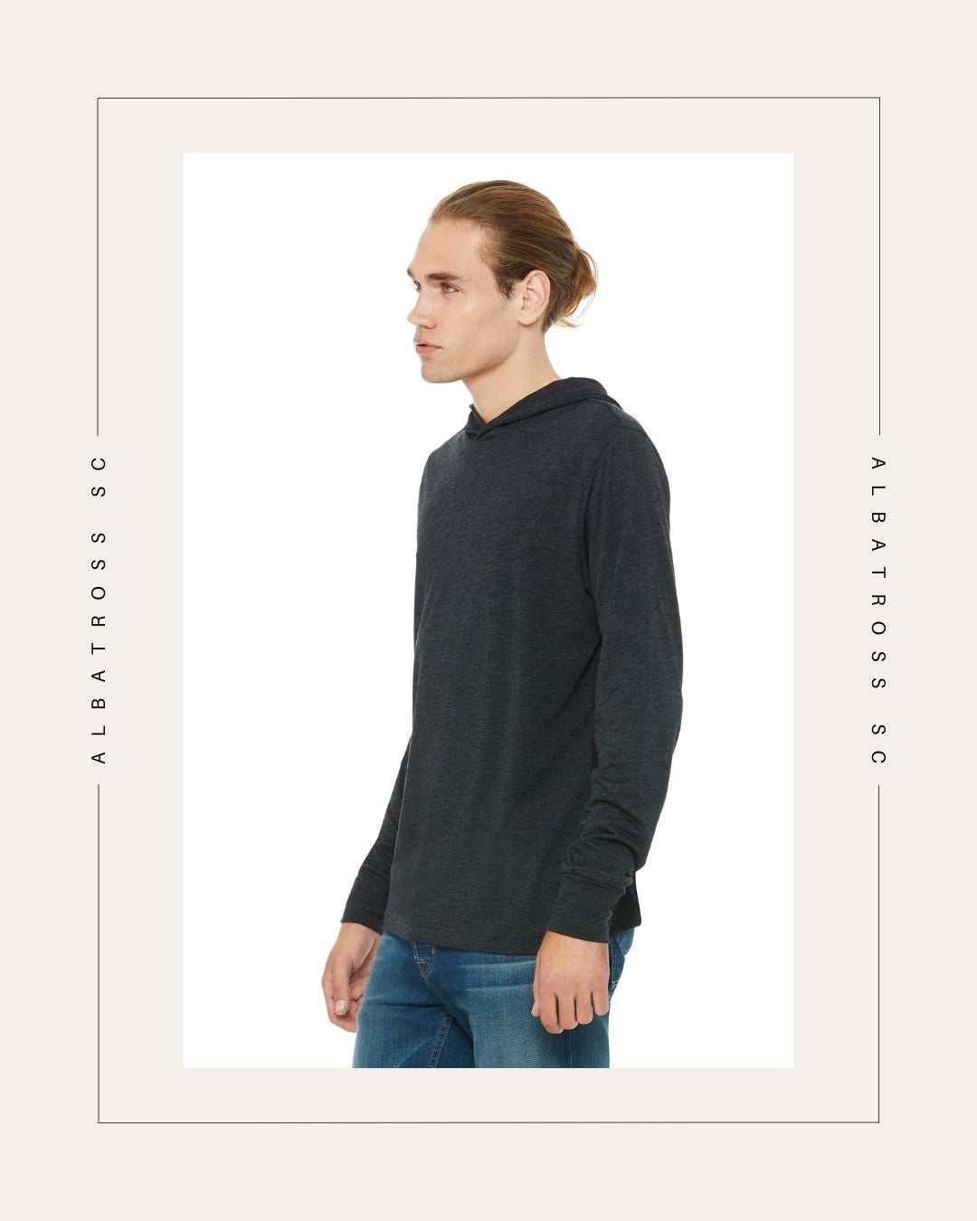 This classic unisex jersey long sleeve hoodie is great for year-round layering and features a retail fit, crossover V at neckline, hood, and cuffs.